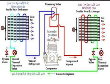 Máy nén (Compressor): Là bộ phận quan trọng nhất, có nhiệm vụ nén môi chất lạnh từ áp suất thấp lên áp suất cao, tạo điều kiện cho chu trình làm lạnh diễn ra.