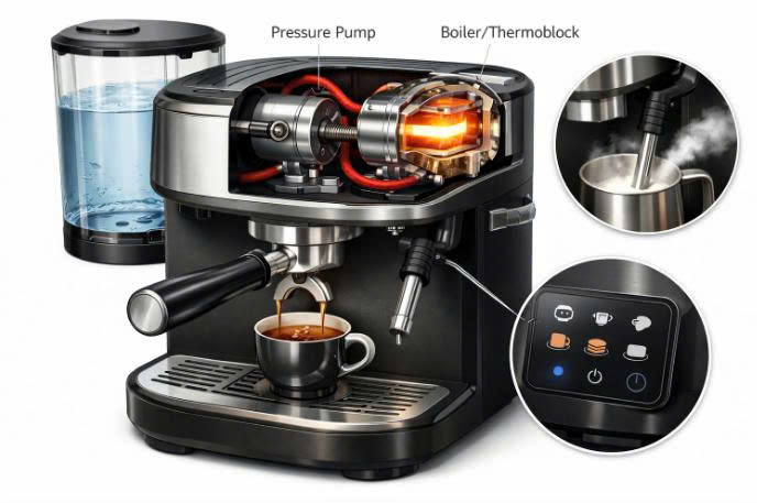 Máy pha cà phê – Cấu tạo, nguyên lý hoạt động và ứng dụng trong đời sống hiện đại