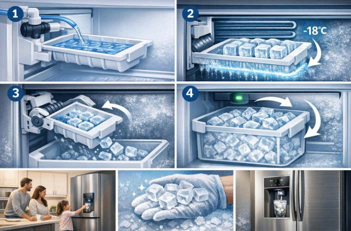 NGĂN LÀM ĐÁ TỰ ĐỘNG TRONG TỦ LẠNH – CẤU TẠO, NGUYÊN LÝ VÀ LỢI ÍCH