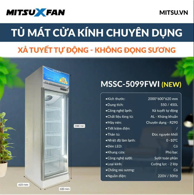 Hãy để MitsuXfan MSSC-5099FWI đồng hành cùng bạn – giữ lạnh êm dịu, làm rạng rỡ mọi sản phẩm và lan tỏa trọn vẹn sự tươi mới mỗi ngày. 🌿